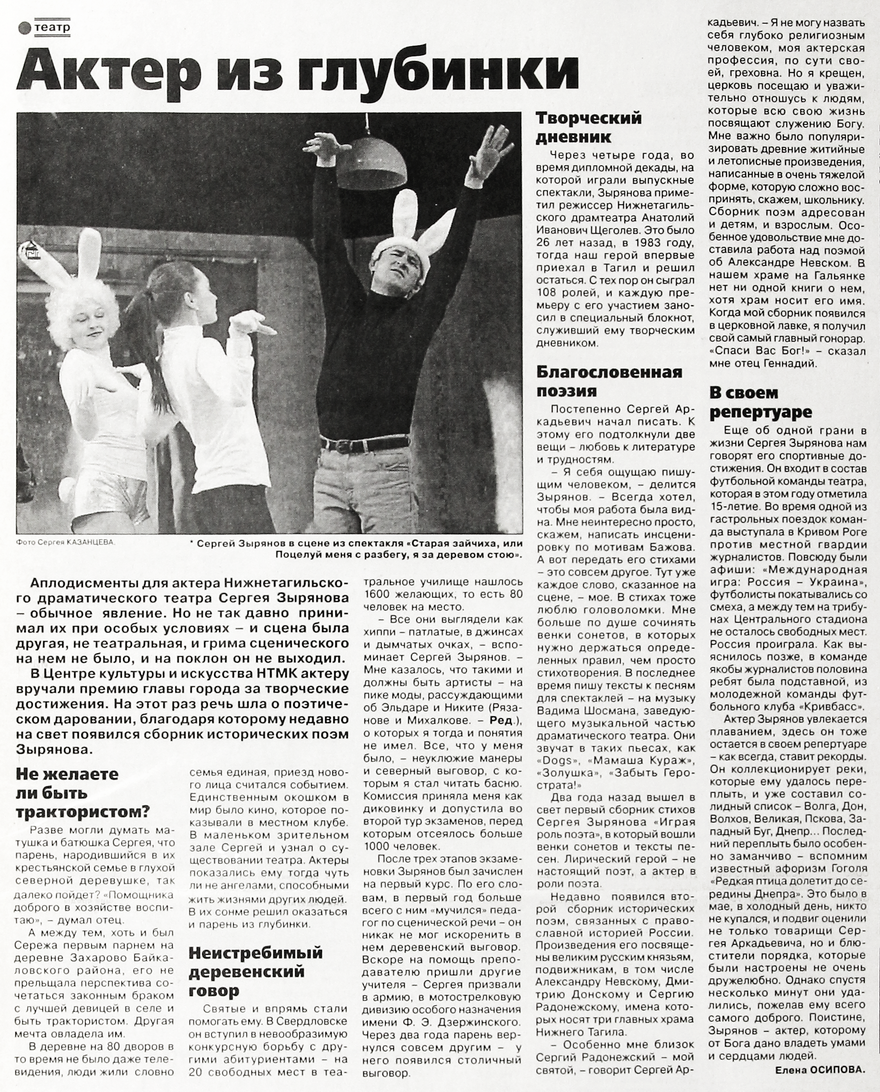 Один из них – актер Нижнетагильского драматического театра им. Д. Н. Мамина-Сибиряка Сергей Аркадьевич Зырянов.